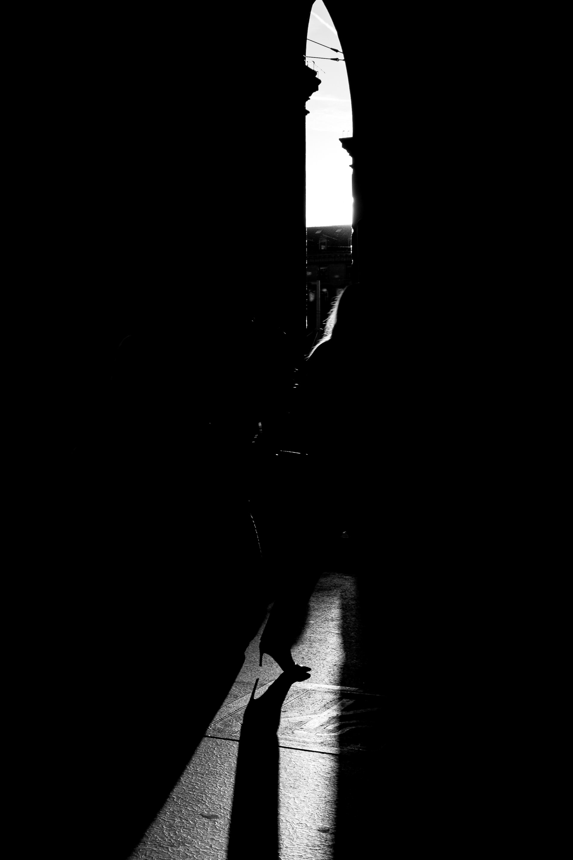 In this series I tried to find and emphasize light in the dark spaces. Light and dark, and so black and white, symbolise good and evil. Therefore, this was also a personal search for light, deciding to face the darkness that everybody bears and often avoids to deal with it. It has been almost a cathartic process to show that the beauty can reside and be found even in the gloomiest places. Furthermore, I find that a silhouette, a shadow or few enlightened elements of a body can be more significant than seeing everything clearly and distinctly, since life is unclear and ambiguous, a mix of dark and bright zones. As a result, I do believe that the light, and so the good, is more powerful and meaningful right in the darkest places.
